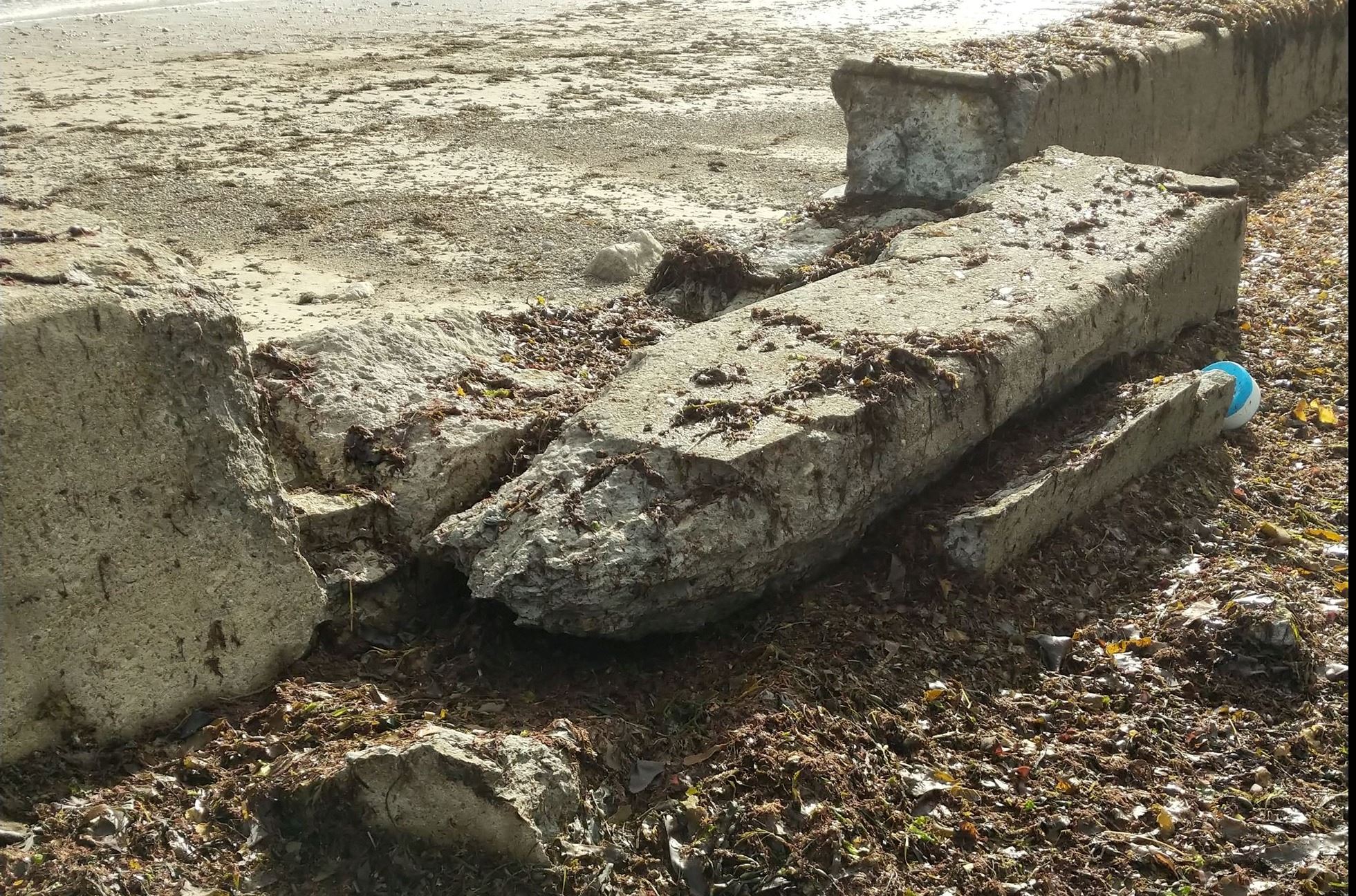 Phase 2 of replacement of the Plymouth Beach seawall will replace approximately 370 feet of dilapidated seawall located immediately to the north of the seawall replacement project completed in 2020 (see Plymouth Beach Seawall & Revetment Reconstruction below). This seawall was constructed in the 1960's and has reached the end of its useful life. The toe of the structure has been exposed through erosion in some areas, the concrete material has begun to break down, and there are large vertical and horizontal cracks throughout the structure. While the Town awaited announcement of the grant award for the design and permitting phase of the project, the seawall was further damaged when an 11 foot section of the top of one of the panels sheared off during a coastal storm in October 2024 (see photo).